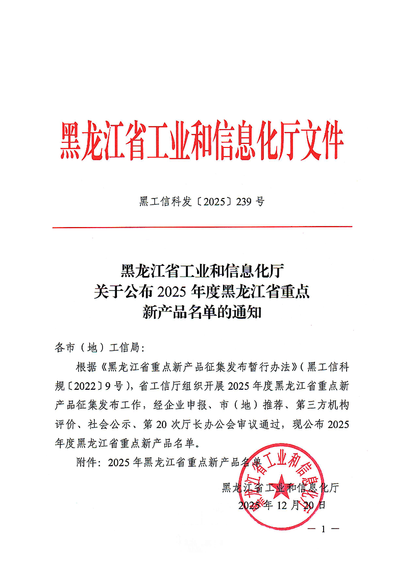 關于公布2025年度黑龍江省重點新產品名單的通知