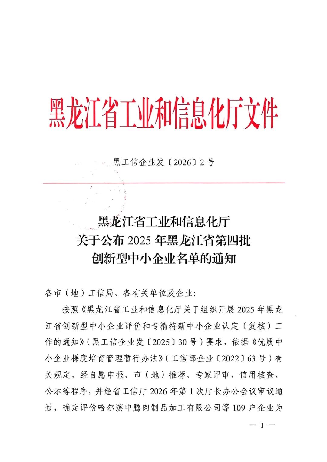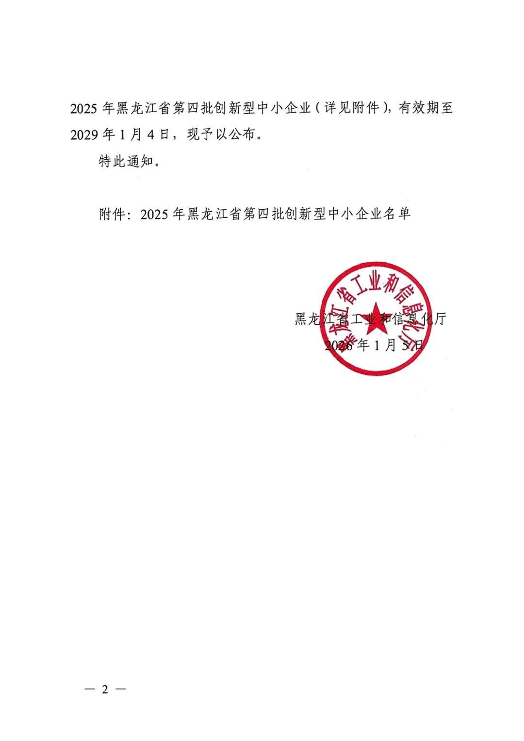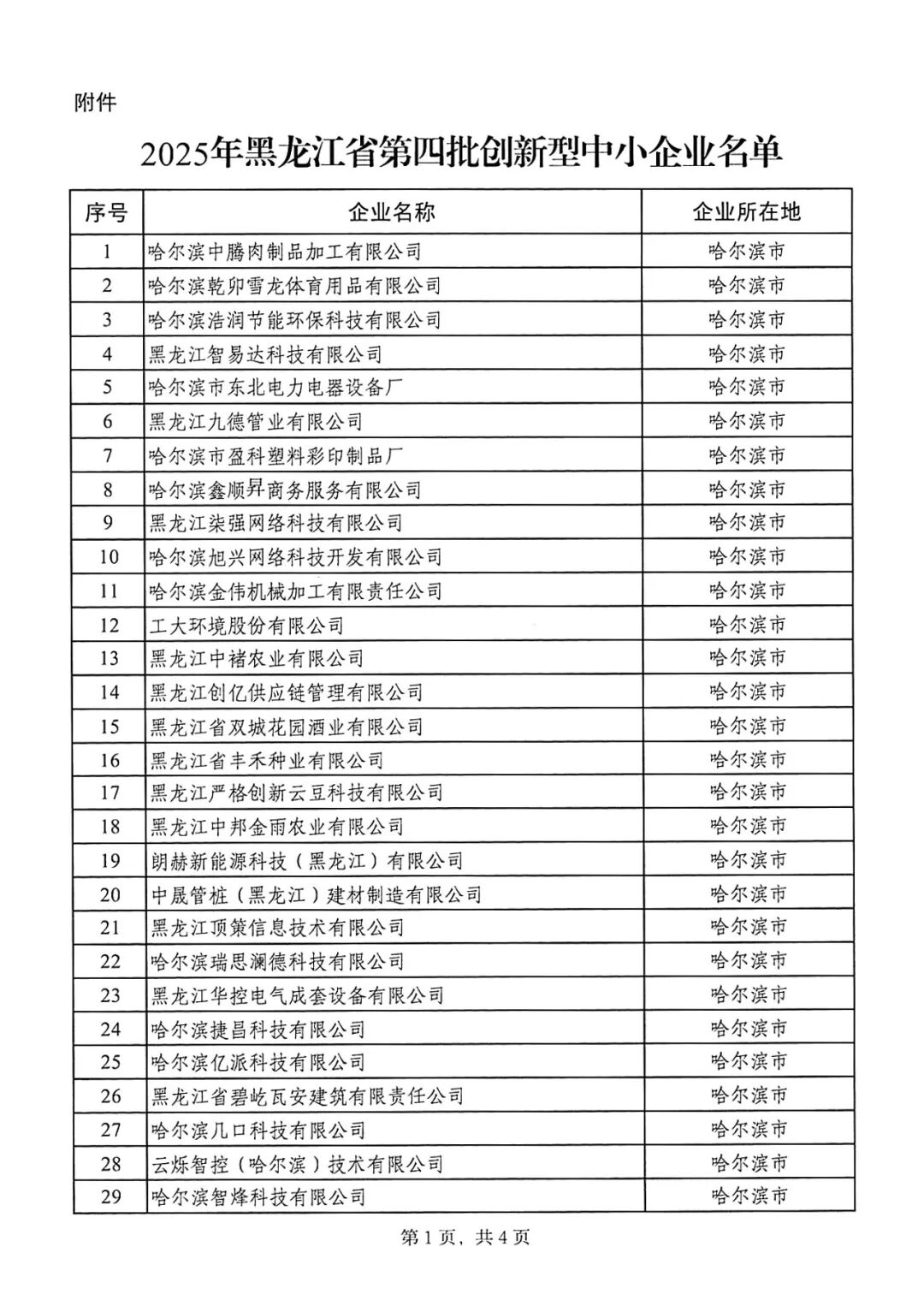 關于公布2025年黑龍江省第四批創新型中小企業名單的通知